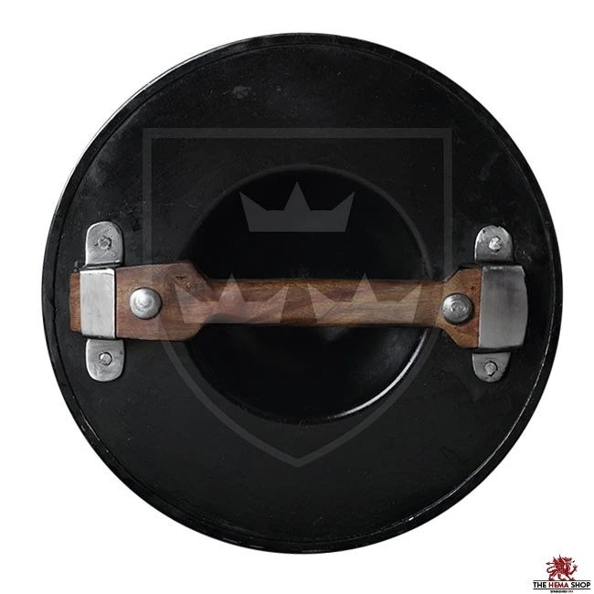 This is a reproduction of a buckler designed with a reinforced handle. The original was found in Dordrecht. Due to the thickness of the piece, it can be used in battle.