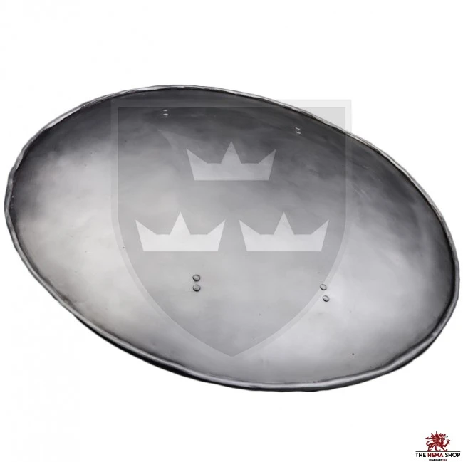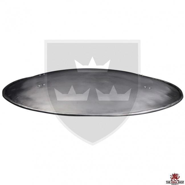 Our Round Rotella Shield is hand beaten from 16 gauge steel – making it both tough and durable enough for re-enactment and HEMA. You can still see the traces of the smith’s hammer marks on the surface. It features 2 adjustable leather straps and cushioning pad for the arm to soak up impact.