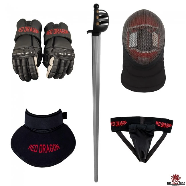 | Specification | Includes: Basket Hilt Xtreme Sparring Sword Red Dragon Fencing Mask Red Dragon Weapon Sparring Gloves Red Dragon Throat Protector Red Dragon Groin Protector |