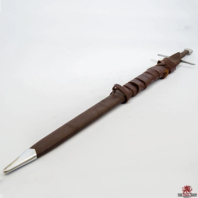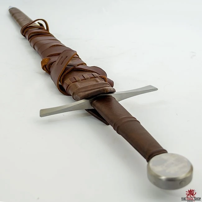 Our Red Dragon Combat “Bastard Sword” is designed to replicate a 13th-century longsword. The broad blade is designed for slashing, and excels at this when sharpened. The 1mm edge makes this sword useable for HEMA (drilling not sparring) and stage combat, although some light surface nicks are inevitable due to the thinness of the edge. If being used for either of these disciplines, we would recommend rounding off the tip for safety.