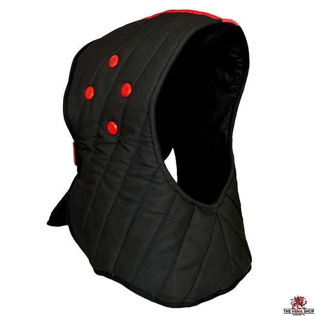 Our Full Mask Overlay by Red Dragon is designed for HEMA and adds an extra layer of protection to your fencing mask. The back of head protection features a series of articulated rigid plastic plates allowing for a combination of protection and mobility. The heavy-duty cotton hood is padded to absorb impact from blows and features a contoured hard plastic plate to protect the throat. The 8 ventilation holes (4 on each side) provide excellent heat release without sacrificing protection. Features and adjustable webbing strap with Velcro attachment for a comfortable fit. Mask not included