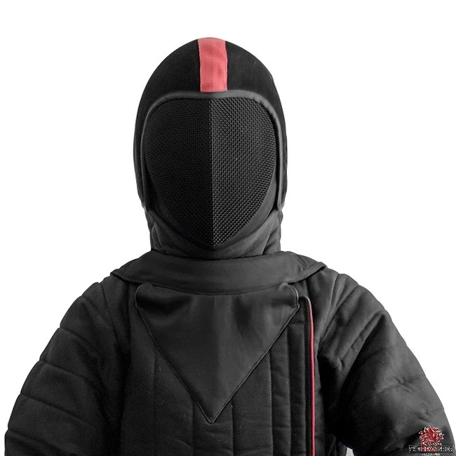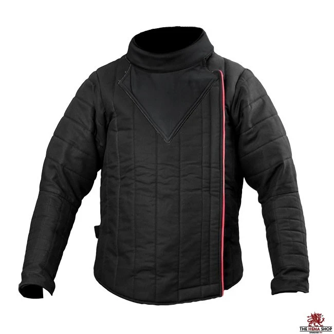Our HEMA Sparring Jacket by Red Dragon is designed for HEMA and is constructed from a 350N rated heavy-duty cotton with an inner lining. The jacket is well padded to receive blows but has no padding on the back as it is very rare to receive effective blows here. This has the effect of reducing the weight of the jacket whilst increasing the breathability. The zipped front panel overlaps to provide a double-layer of protection against thrusts to the torso.