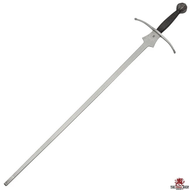| Specification | Total length: 103 cm Blade length: 84 cm Guard Length: 23 cm Grip length: 13.5 cm Weight: 1080 g Blade thickness (base): 5 mm Point of Balance (PoB): 10 cm Blade: 51CrV4 spring steel Edge: Blunt Pommel: forged-faceted sphere Scabbard: Not Included |