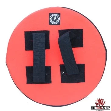 The foam buckler was designed for HEMA training with other foam simulators. Its appearance is reminiscent of medieval steel bucklers.
