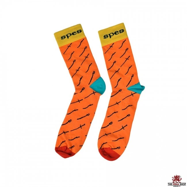 Universal, calve reaching socks have been designed for people who use long pants during HEMA training, as well as those who want to smuggle information about their hobby in everyday clothes.