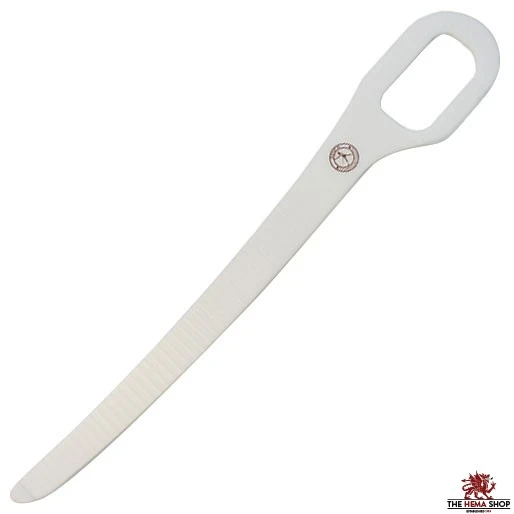 It is made of a hard, white flexible synthetic material. It has a handle with a large opening in which any glove, also heavy, such as Lobster, can fit.