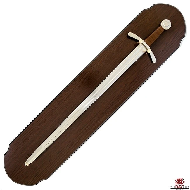 Our Art Gladius Display Plaques are the ideal way to display your sword. They are constructed from wood with a varnished finish that contrasts nicely with the polished brass fittings. They are mounted to the wall by hooking them over 3 screws (included).