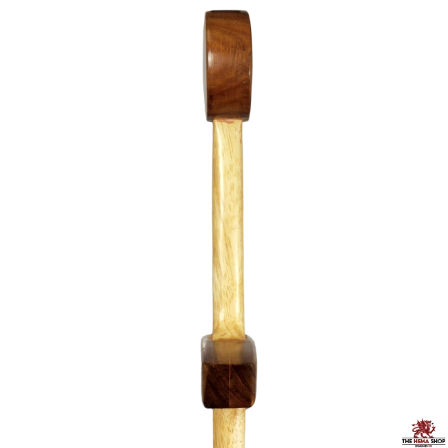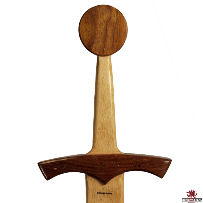 The advantages of this one handed training sword made of wood are obvious. On the one hand, the risk of injury is significantly lower. On the other, this wooden sword can withstand hard blows while your valuable steel sword is safe at home. Of course, even hardwood is not indestructible and can break along the grain, but this one handed training sword should be your first choice for practicing. The wheel pommel and crossguard are made of darker wood to emphasize that it looks like a sword from the 12th to 15th century.