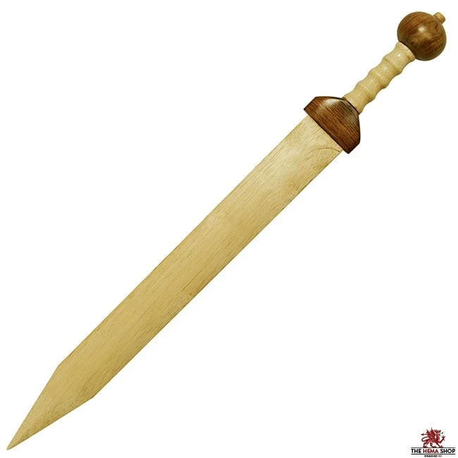 Our training gladius is based on the classic Roman gladius and made entirely of hardwood. The pommel and guard are darker for visual interest. If you plan to use this wooden gladius as a training sword, be careful: the blade is made of wood but it does have a sharp point.